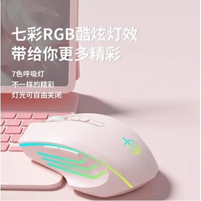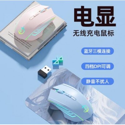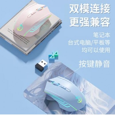 无线蓝牙有线三模鼠标便携可充电轻量化静音人体工学适用于平板电脑台式笔记本电竞游戏办公 单模-天空蓝无光