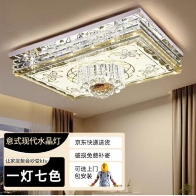 轻奢水晶灯2025新款大气音乐led客厅卧室三室两厅吸顶中山灯具 包安装-魔柱款:80*60CM七色彩光80W (标配)面板开关调光